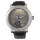 Uhr, Vintage Männeruhr mit schwarzem Lederarmband