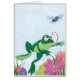 der Frosch springend oben über Blumen, um eine Fliege zu fangen
