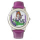 Uhr, Kinderuhr aus Edelstahluhr mit lila Lederarmband