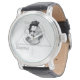 Uhr, Vintage Männeruhr mit schwarzem Lederarmband