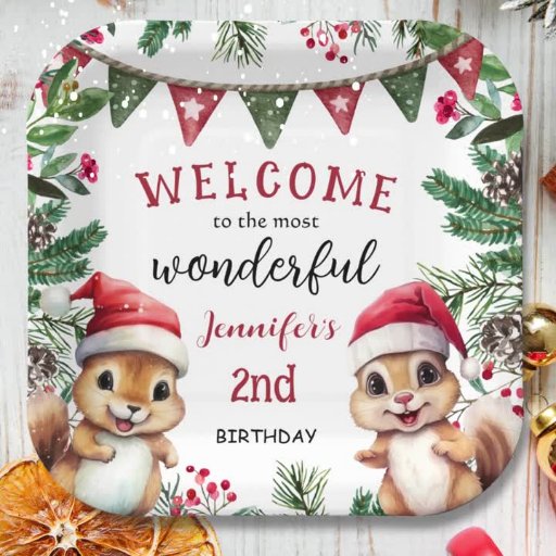 Cute Squirrel Christmas 2nd Birthday PartyDesignt von H-Art Studio Design
