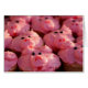 Ein Teller mit rosafarbenen Schweinekuchen wartete bei einer kleinen Geburtstagsfeier in der Sonne.