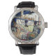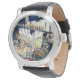 Uhr, Vintage Männeruhr mit schwarzem Lederarmband
