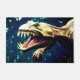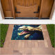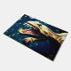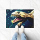 Diese Dinosaurier-Türmatte hat einen beängstigenden Dinosaurier darauf.