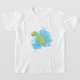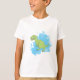 Eine niedliche Abbildung eines grünen Tyrannosaurus Rex Dinosauriers mit blauen Farbspritzen im Hintergrund. Ideal für Geburtstagsgeschenke, Kinderzimmer-Dekoration, Kinderspielkunst, Wohngestaltung, zurück zur Schule oder zu jedem anderen besondere Anlass.