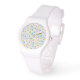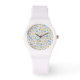 Eine schicke White Sporty Watch zum Anpassen, mit einem dicken Muster von White Daisies auf einem Sky Blue Hintergrund, das Sie ändern können, wenn Sie wollen; Teil der Posh & Painterly 'Daisy Chains' Kollektion, kann dieses Muster leicht an jede Uhr angepasst werden.