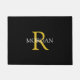 Personalisieren Sie diese trendige schwarze Türmatte mit Gold Monogram und White Name. Ein einfaches, aber elegantes Design für ihn oder sie.