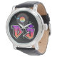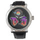 Uhr, Vintage Männeruhr mit schwarzem Lederarmband