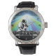 Uhr, Vintage Männeruhr mit schwarzem Lederarmband
