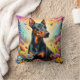 Doberman Hund, Blume und Bergwelt Kissen