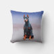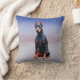 Ein niedlicher Doberman Hund sitzend mit farbenprächtigem Hintergrund, eine Geschenkidee für jemanden, der diesen Hund züchtet.