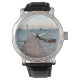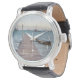 Uhr, Vintage Männeruhr mit schwarzem Lederarmband