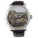 Uhr, Vintage Männeruhr mit schwarzem Lederarmband
