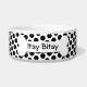 Eine einfache Hundebötchenform auf einem weißen und schwarzen Polka-Punktmuster. Sie können die Farbe und den Stil des Schriftartes sowie die Hintergrundfarbe ändern.