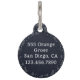 Pet tag with a personalized dog name monogram in a cute script font on the front with your address and phone number in a serif font on the back. The background on both sides is a pattern featuring digitally hand-drawn dog constellations paired with ditsy stars on a black background. Check out our store for more matching items from this collection.