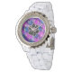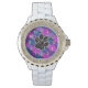 Dog Lover Diagonal Stripes Blue Lila Paw Print Armbanduhr