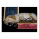 Golden Retriever Welpe mit Tafel und altem Buch.