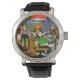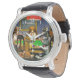 Uhr, Vintage Männeruhr mit schwarzem Lederarmband