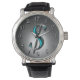 Uhr, Vintage Männeruhr mit schwarzem Lederarmband