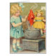 Ein beschäftigter Tag in Dollville - ein kleines Mädchen's Life Die Dolly Wäsche Illustration war ursprünglich eine Diamond Dyes Werbung aus dem Jahr 1911. Das kleine blonde Mädchen trägt ein hübsches blaues Kleid, während sie an ihrem Topf mit roter Farbe arbeitet und das Kleid ihrer kleinen Puppe über dem heißen Farbton hält. Ihre Dollies sind im Hintergrund und sehen dem kleinen Mädchen zu, als ob sie sich einem neuen Kleid zustimmen würden! Die Arbeit wird von der Illustratorin Bessie Pease Gutmann gemacht, die für ihre Kinder, Tiere und Fruchtdarstellungen bekannt war. Es wurde für Diamantfarben erstellt und auf Zinnschilder und Schalen platziert.