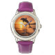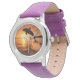 Uhr, Kinderuhr aus Edelstahluhr mit lila Lederarmband