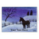 Eine winzige Aquarelllandschaft eines Esels in einem schneebedeckten Feld und einem Sternenhimmel.