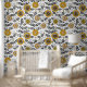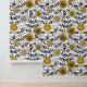 Doodle-Blume und -Blätter in Gelb und Schwarz Tapete