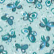 Niedliches, mehrdirektionales, nahtloses Muster mit vielen blauen, grünen Schmetterlingen, die über einen farblich gespaltenen Hintergrund flattern. Dieses Muster ist ein festes Bild, aber Sie können die Größe und Position des Musters ändern.