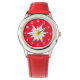 Kinderuhr aus Edelstahl mit rotem Lederarmband