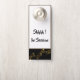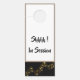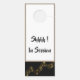 Dieser Türhänger ist zweiseitig und in Schwarz/Weiß mit einem goldfarbenen Notenstreifen auf dem Personal. Obere Kanten, umgeben von einem silbergrauen Rahmen mit Beispieltext von "Shhhh ! In der Sitzung". Passen Sie dieses Objekt Ihren Wünschen an, mit welcher Farbe oder Phrase Sie möchten, oder kaufen Sie es wie geplant.