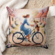 Dieses Design stellt eine Seite eines doppelseitigen Kissens dar, das eine Mutter zeigt, die auf einem Fahrrad sitzt und ihren Hund durch eine Saite verbunden hat.