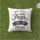 Doppelseitiges Kopfkissen mit einem grünen Topiarbusch in einer braunen Urne mit einem schwarzen Buchstaben 'Gerettet von Grace' Ephesians 2:8 zitieren auf einer Seite auf einem anpassbaren, hellgrauen Hintergrund. Auf der anderen Seite gibt es ein anderes, beliebtes Christliches Zitat: "Fürchte nicht, dass ich bei dir bin" von Isaiah 41:10 auf weißem, anpassbarem Hintergrund.