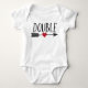 Doppel Trouble Twins Bodysuit - Dress up your twin babies in style mit diesem frechen doppelten Trouble-Doppelkarosserieanzug. Auf der Vorderseite das Wort "Double" und ein Pfeil mit einem Herz gedruckt. Finden Sie den passenden Bodysuit mit dem Wort "Trouble" und dem umgekehrten Pfeil in unserer phantastischen Babybekleidung für Zwillinge. Das ideale Baby-Duschgeschenk für zukünftige Eltern von Zwillingen