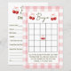 Keep guests entertained with this double-sided baby shower games card featuring Baby Bingo and Baby Predictions. Designed in a minimalist style with cute cherry details. A simple and stylish way to add fun.