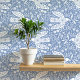 Tauben und Blume Vogelkunst-Muster in Weiß auf staubblauer Farbe Verwandeln Sie Ihren Raum mit dieser hübschen Tapete, die fliegende Friedenstruppen und blühende wilde Blume im lebendigen Stil der Volkskunst zeigt. Die faszinierende Vogelwelt und das botanische Blumenmuster verleihen dem Raum eine Touch von Weisheit und Wärme, die sich perfekt für eine gemütliche und einladende Atmosphäre eignet. Dieses leicht zu installierende und schön detailliertes Hintergrundbild ist eine wunderbare Möglichkeit, eine einzigartige, künstlerische Touch auf Ihre Zuhause zu bringen. Originelle Kunst von Nic Squirrell.