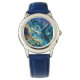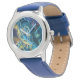 Kinderuhr aus Edelstahl mit blauem Lederarmband