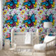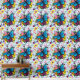 Blau-Schwarz-Drache mit Flügeln aus Schmetterlingen, eingebettet in einen Strauß von bunten Blume in einem hellblauen Hintergrund.