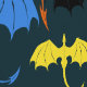 Eine auffallende Drachenflügel-Gruppe im Stammetil, die sich in einer tiefen, dunkelblauen Kulisse nach oben erhebt. Jeder Drache ist einzigartig illustriert in lebhaften Schwarz, Braun, Rot, Orange, Gelb, Blau und Grün. Mit seinen kühnen, offenen Flügeln und seinem eleganten Tätowierungsstil ist dieses Design ein dynamisches und mystisches Statement - perfekt für Fantasy-Liebhaber und Drachenfans.