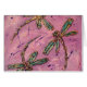 Schöne, mehrfarbige Libellen auf einem rosa, glänzenden Hintergrund