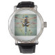Uhr, Vintage Männeruhr mit schwarzem Lederarmband