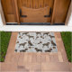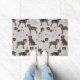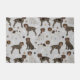 Niedliche Drahthaar Pointing Griffon Hunde sitzen und stehen mit Pfotenabzügen und Hundeknochenmuster auf einem farbigen Hintergrund.