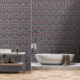 Vintag aussehende, rote und blaue Damast-Schale und Tapete