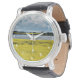 Uhr, Vintage Männeruhr mit schwarzem Lederarmband