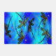 Lebhaft farbene Libellen fliegen auf einem elektrischen blauen Hintergrund. Passen Sie mit einer Willkommensbotschaft an, um das perfekte Geschenk zu machen.