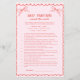 Celebrate the season with this red and pink hand drawn bow baby shower game, a cheerful Christmas baby traditions quiz that guests will love. Perfect for a holiday shower, winter celebration, or festive mommy-to-be party, it features cute sketched bows and playful lettering. A fun way to share laughter and memories, this printable-style game adds a joyful holiday touch to your baby shower.