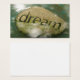 Foto eines Felsens mit "Dream"-Ätzen, die in einem Vogelbad schwebend und einen surrealen, andersweltreichen Effekt erzeugen. Sie können sich mit einer inspirierenden Nachricht anpassen, aber "Dream" sagt es einfach alles.