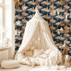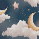 Mit diesem bezaubernden Mond und dem sternförmigen Nachtdesign verwandeln Sie Ihren Raum in ein Himmelsreich. Mit sanften, halbmondfarbenen Monden umgeben von flauschigen Wolken und funkelnden Sternen auf tiefblauem Hintergrund strahlt dieses Muster ein beruhigendes, traumhaftes Ambiente aus. Ideal für Zimmer, Kinderzimmer oder gemütliche Räumlichkeiten, verleiht dieses Design Ihrem Dekor einen charmanten, himmlischen Charme.