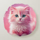 Dreamy Niedlich Fluffy Pink Kitty Cat Rundes Kissen