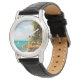 Uhr, Klassische Damenuhr mit schwarzen Lederarmband