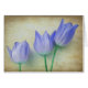 Texturierte Bild von drei blauen Tulpen auf einem neutralen Hintergrund.